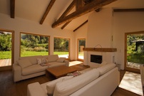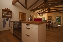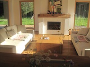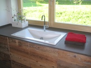 Modern Kitchen with Dishwasher, stove and fridge. Dining table for up to 8 people, two couches in front of the fireplace. Just step out onto the wodden patio and enjoy the relaxing sound of the river Saalach.