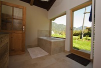 Bathtub with direct view to mount Achberg and the Saalach river. WC, Shower and door to our outdoor shower (ideal after the Sauna).