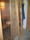 Sauna with „hidden room“ on top. If you step up the ladder, you will find a cosy separée to relax and to feel like in your private little hammam.